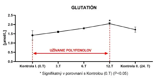 - stúpla hladina glutatiónu (GSH), ktorý chráni bunkové štruktúry pred oxidačným poškodením.