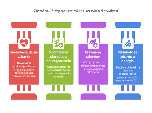 Výskumy potvrdzujú, že resveratrol znižuje krvný tlak, zlepšuje elasticitu ciev a znižuje riziko kardiovaskulárnych príhod. Najviac efektov bolo pozorovaných pri pravidelnom užívaní doplnkov v kontrolovaných dávkach.